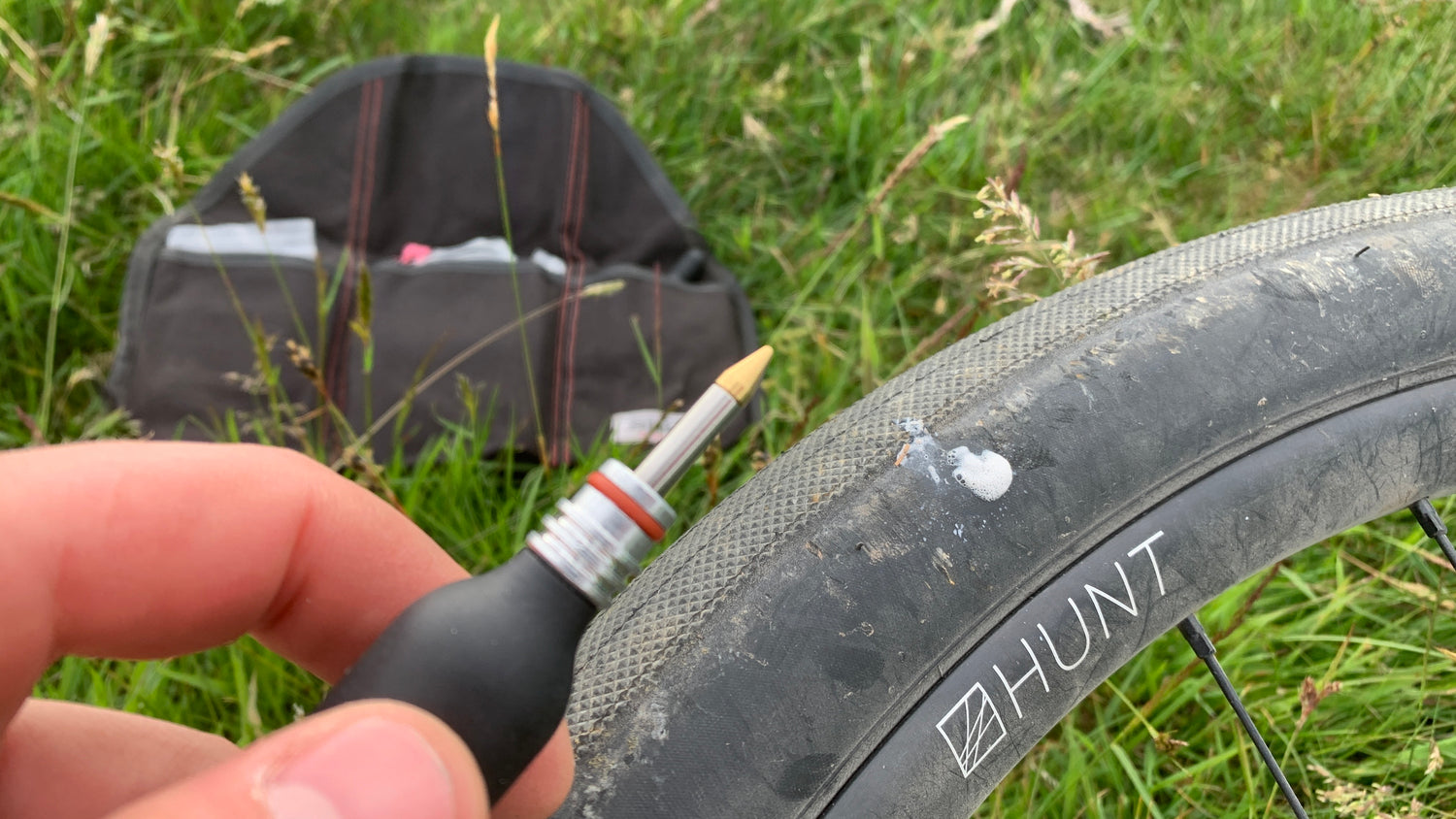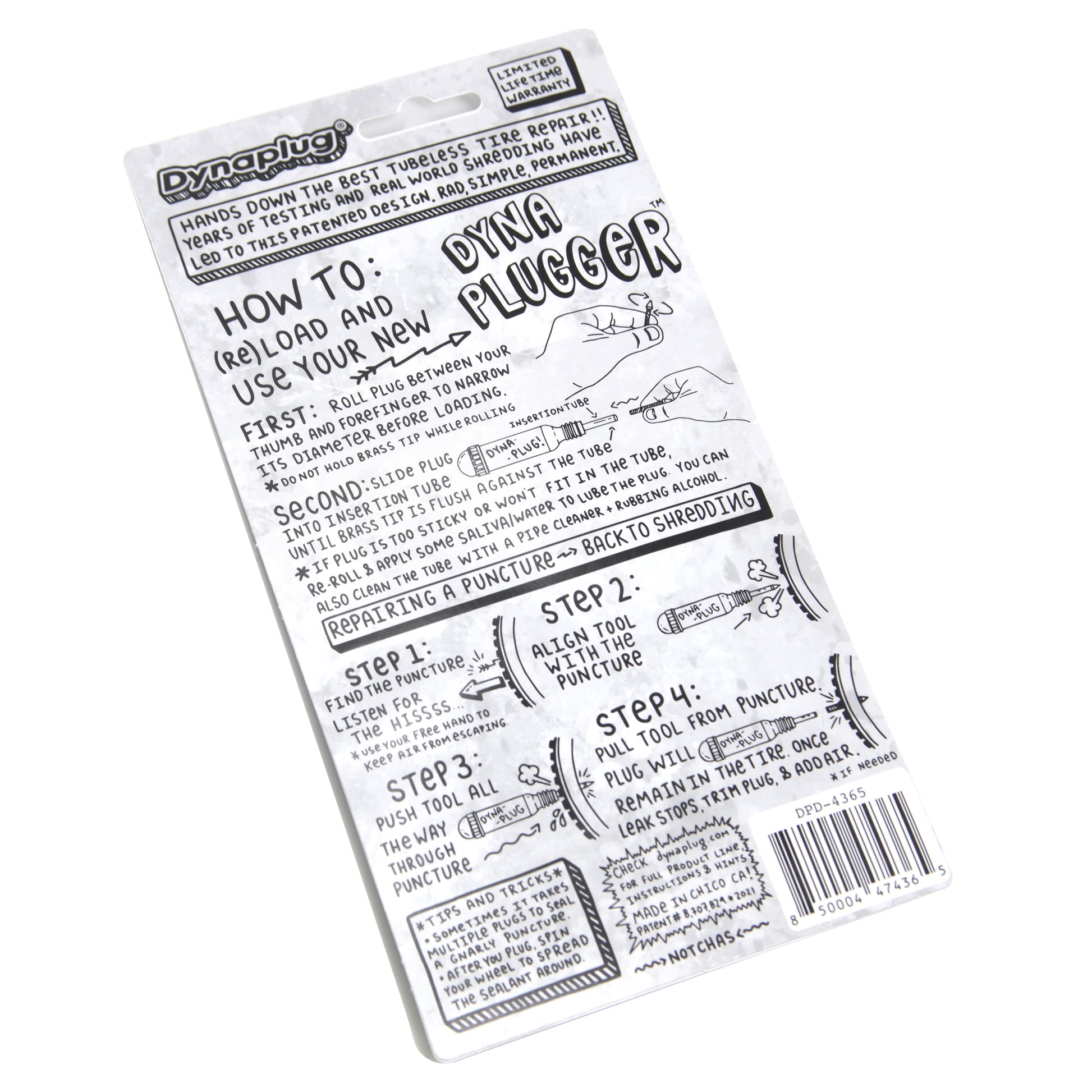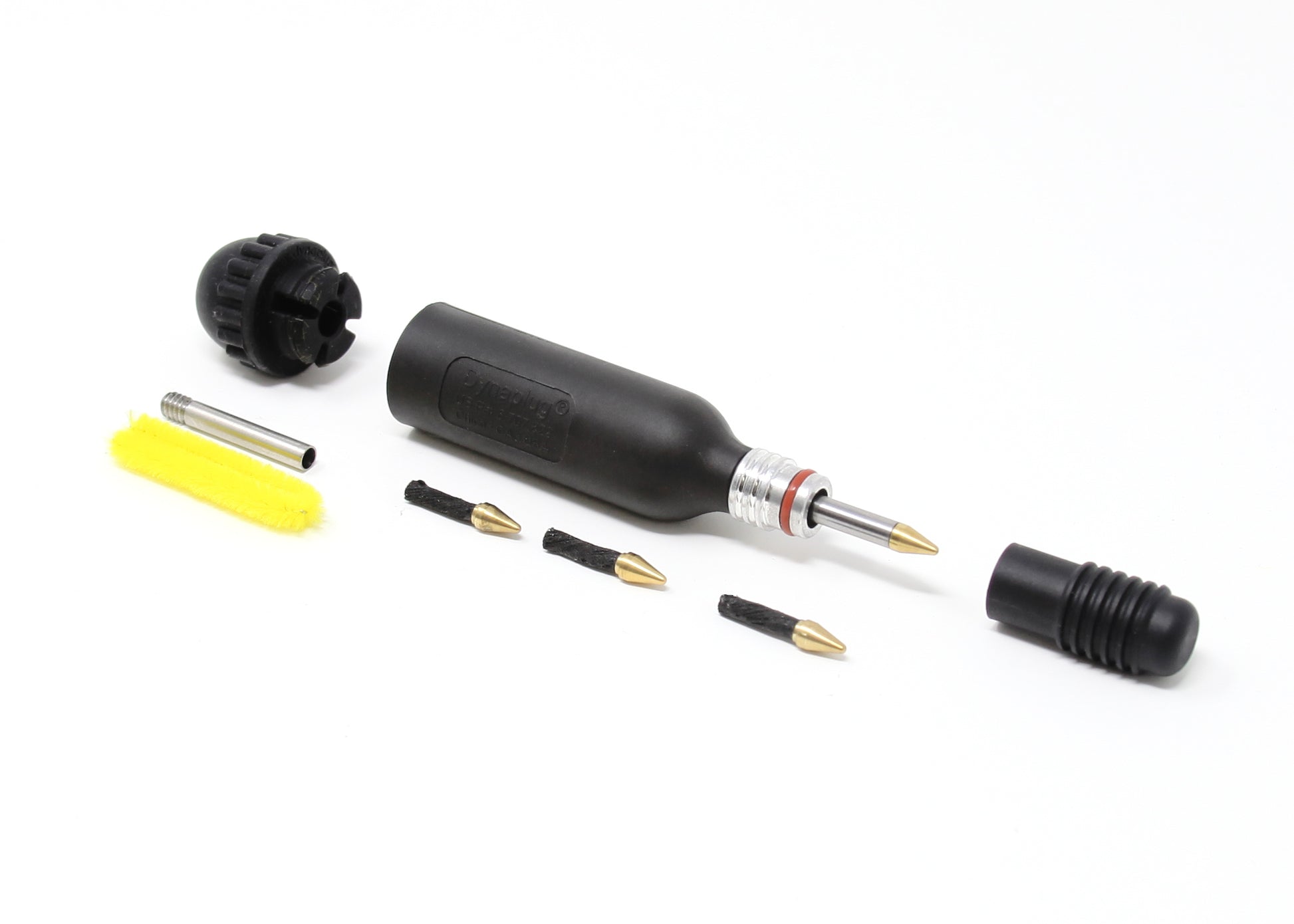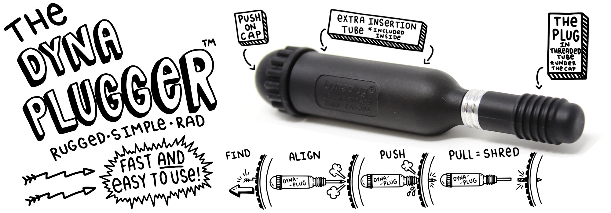 The DynaPlugger™ is a simple, rugged, rad way to repair your tubeless tire. Just find the puncture, align the tool, push into puncture, pull out and the plug stays in place. Now you're ready to get back to shredding!